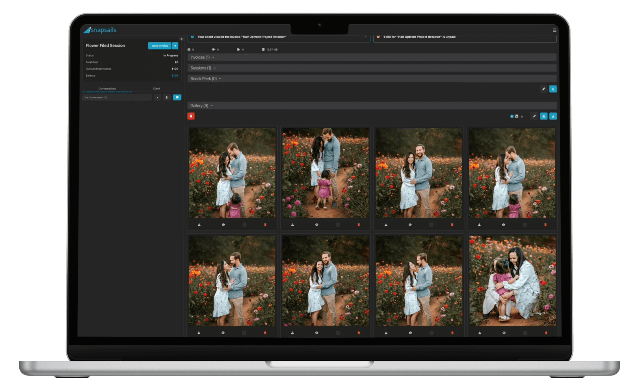 Invoice your client or get paid for second shooting someone else's session. snapsails handles it all.